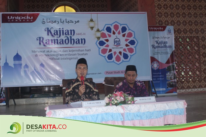 TERBUKA: Dekan Fakultas Saintek Unipdu, M Masrur MKom, saat menyampaikan materi pada kajian Ramadan di Islamic Center Unipdu, Rabu (27/3/2024). (Rojiful Mamduh/Radar Jombang)
