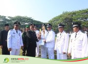 Piagam penghargaan diserahkan Kapolsek Peterongan Iptu Solihin Budi Santoso didampingi Camat Peterongan Mohammad Eryk Arif kepada Kepala Desa Morosunggingan Sunarjo saat upacara peringatan HUT ke-80 Kemerdekaan RI di Lapangan Ponpes Darul Ulum, Minggu (17/8) pagi.