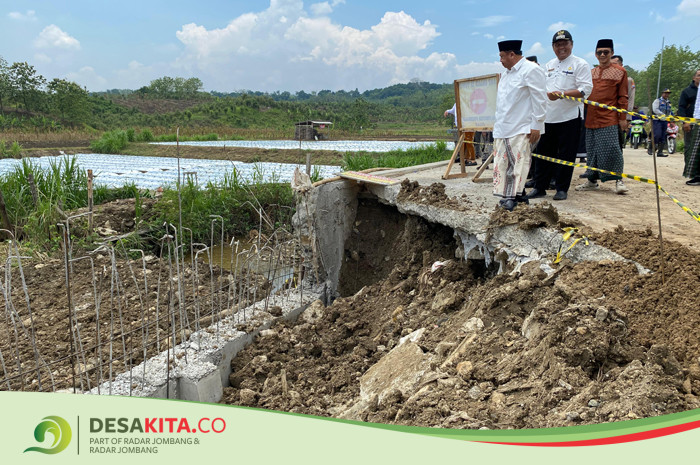 Desakita.co – Bupati Jombang Warsubi turun langsung meninjau jalan cor beton ruas Cupak–Asemgede di Desa Asemgede, Kecamatan Ngusikan, yang ambrol akibat longsor, Kamis (23/10).