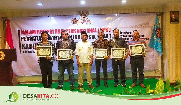 Penghargaan diserahkan saat malam resepsi ‘Puncak HPN (Hari Pers Nasional) yang digelar di salah satu hotel di Jombang, Rabu (15/5) malam.