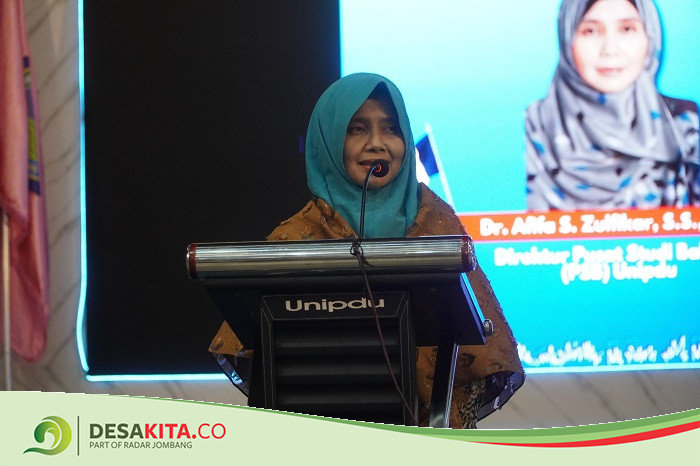 Dr Hj Afifa S. Zulfikar menyampaikan apresiasi dan terima kasih kepada IFI Surabaya di bawah naungan Kedutaan Besar Prancis, yang telah menunjuk Unipdu sebagai lokasi peringatan Hari Francophonie.