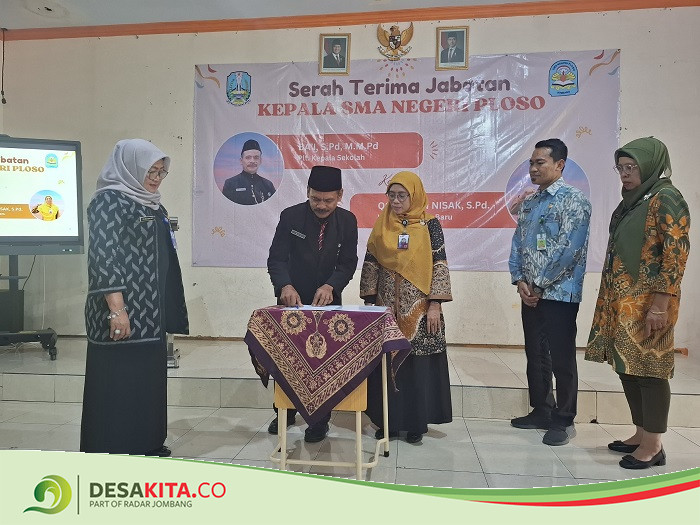 Desakita.co – SMAN Ploso menggelar serah terima jabatan (sertijab) kepala sekolah pada Kamis (22/5) siang. Pelaksana tugas (Plt) Kepala SMAN Ploso, Ba’i SPd MMPd, kini digantikan Qoidatun Nisak SPd, yang sebelumnya guru di SMAN 1 Menganti, Gresik.