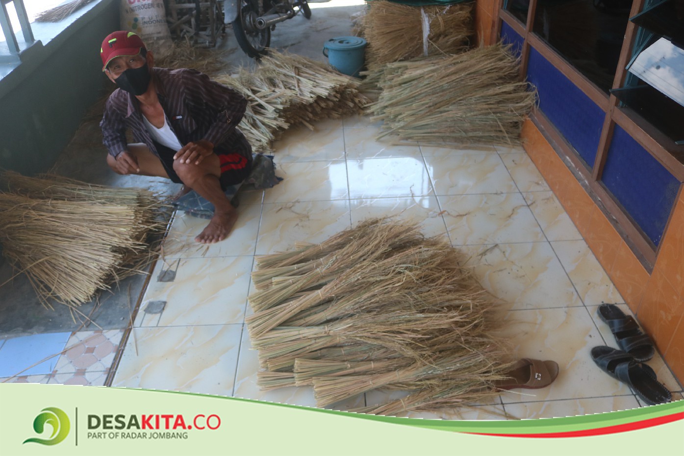 Dirumahnya, Sabar tampak sibuk dengan jerami padi berwarna cokelat kering itu.