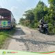 Pantauan di lokasi, tampak dua pria terlihat sibuk menempa lempengan besi di atas sebuah kayu tua.