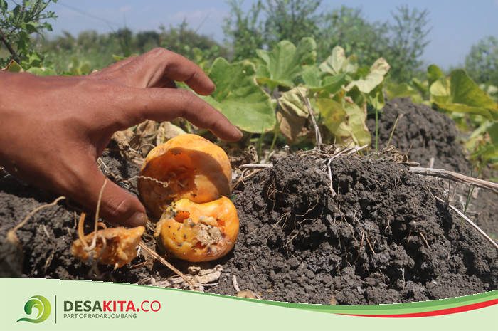 Desakita.co – Tingginya intensitas hujan beberapa waktu lalu membuat petani blewah di Jombang gagal panen.