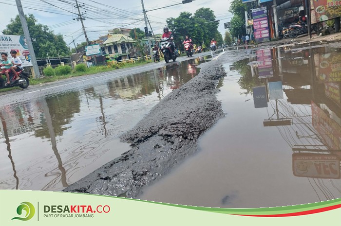 DesaKita.co – Kondisi jalur provinsi Jl KH Wahab Hasbullah Jombang rusak dan selalu tergenang. Kondisi ini dikeluhkan warga lantaran membahayakan pengguna jalan yang melintas.